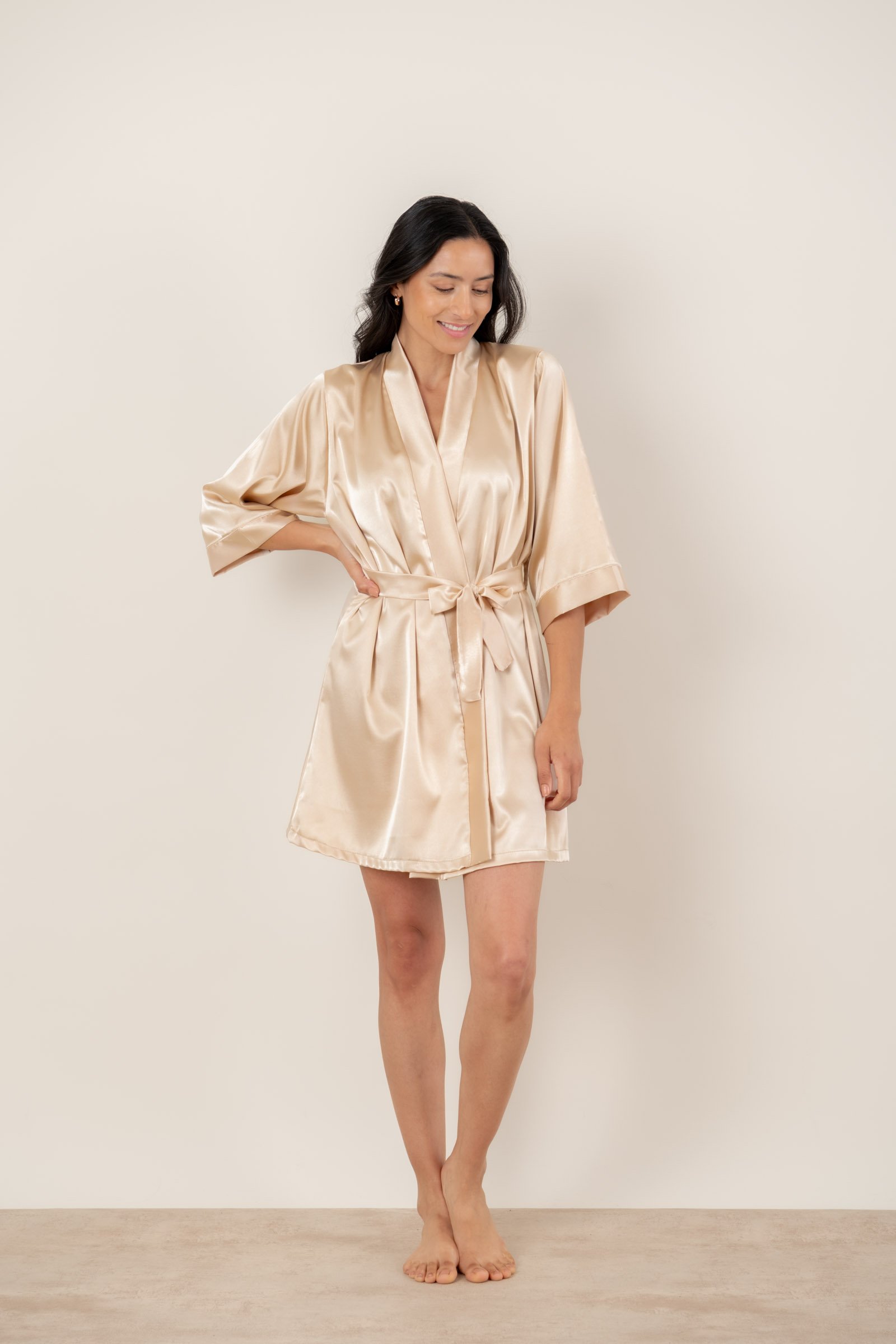 Elegancia y glamour en cada movimiento. La bata Elise, confeccionada en satén de lencería, es ideal para esos momentos en los que quieres sentirte sofisticada y empoderada.
