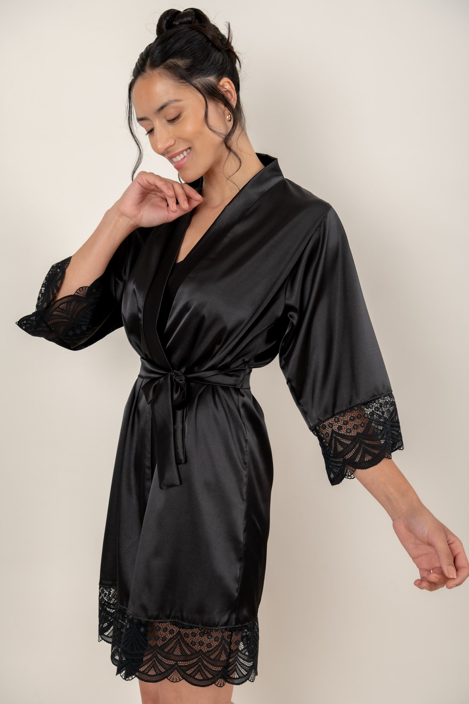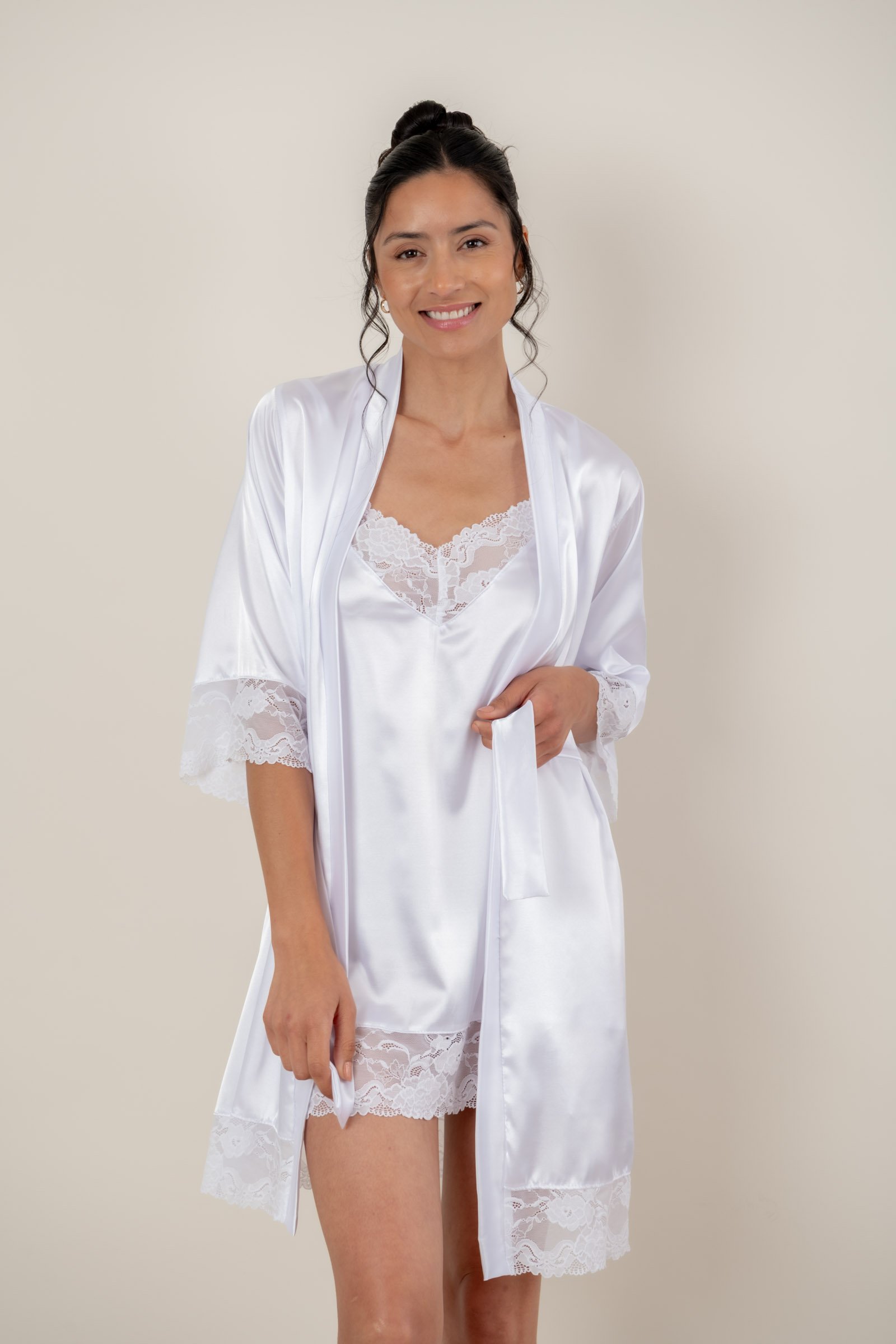 La bata Ingrid es una pieza de lujo que combina elegancia y comodidad, perfecta para esos momentos de relax en casa. Disponible en dos colores clásicos, negro y blanco, esta bata es el complemento ideal para cualquier ropero de lencería sofisticada.